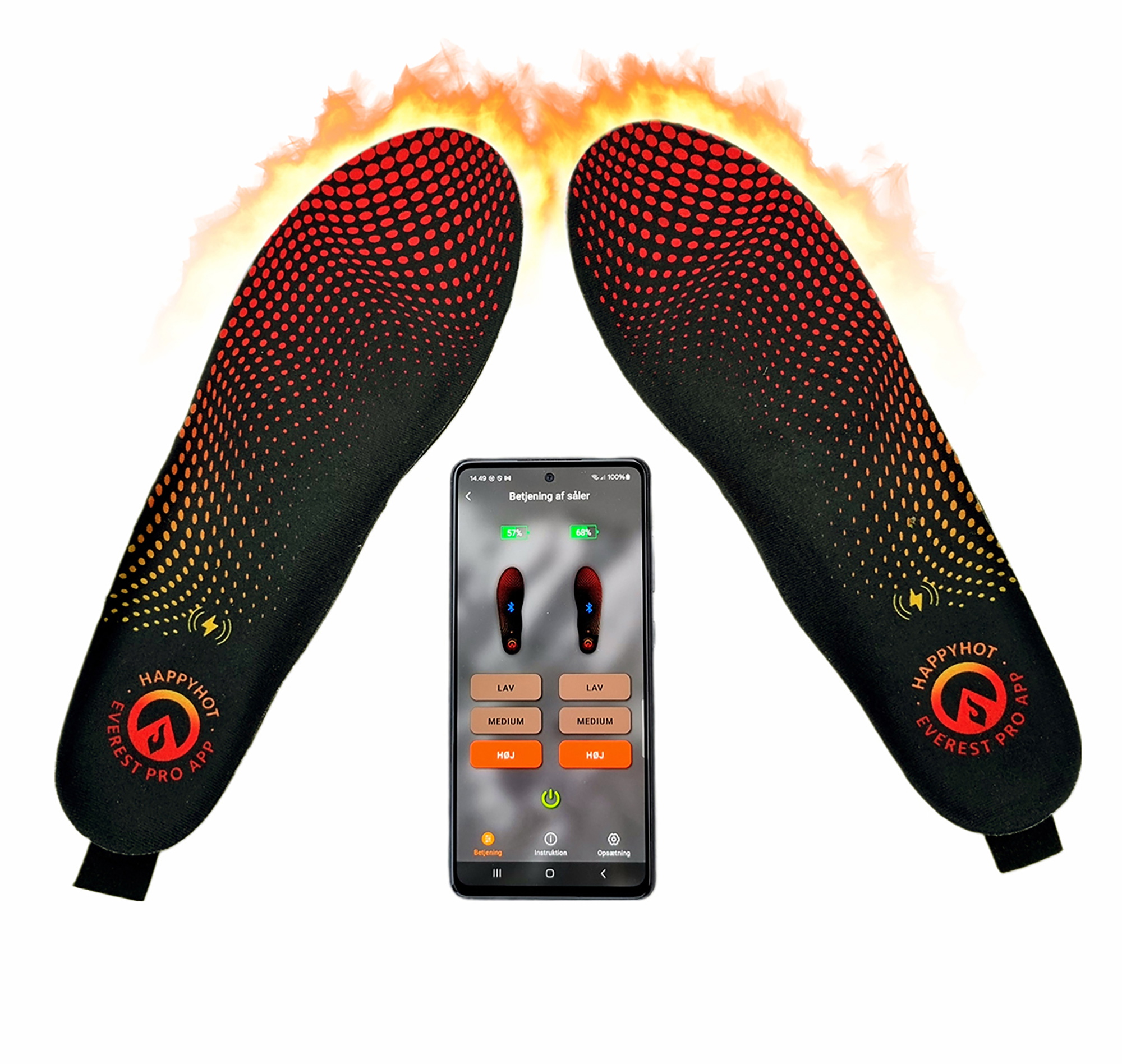 Vi har fundet Happyhot Varmesåler Everest M App Trådløs Opladning fra Happyhot hos Cykelexperten.dk i kategorien Beklædning Cykelsko. Happyhot Everest Pro App varmesåler sætter en ny standard for elektrisk fodvarme. Med trådløs opladning, app-styring og avanceret teknologi får du markedets mest komfortable og brugervenlige varmesåler. Perfekte til arbejde, jagt, ski eller friluftsliv i